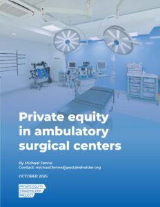 The Private Equity Stakeholder Project’s research brief, Private Equity in Ambulatory Surgical Centers, examines how private equity firms have become dominant players in the $30 billion outpatient surgery market. Authored by PESP researcher Michael Fenne, the report traces how leveraged buyouts, joint ventures, and stealth roll-ups are transforming care delivery—and raising red flags for patients, providers, and regulators.